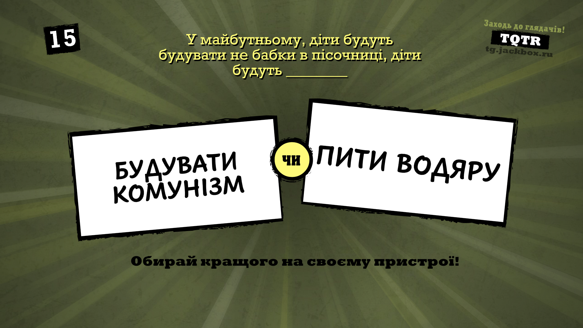 Для тих, хто хоче пограти в Джекбокс українською! Найкумедніша гра серії The Jackbox Party Pack - Жартлист! Які на смак сосиски з обличчям Потапа? Що хоче весь цей час нам сказати Чубакка? Ці та інші питання вже у грі! Приєднуйся, буде весело.